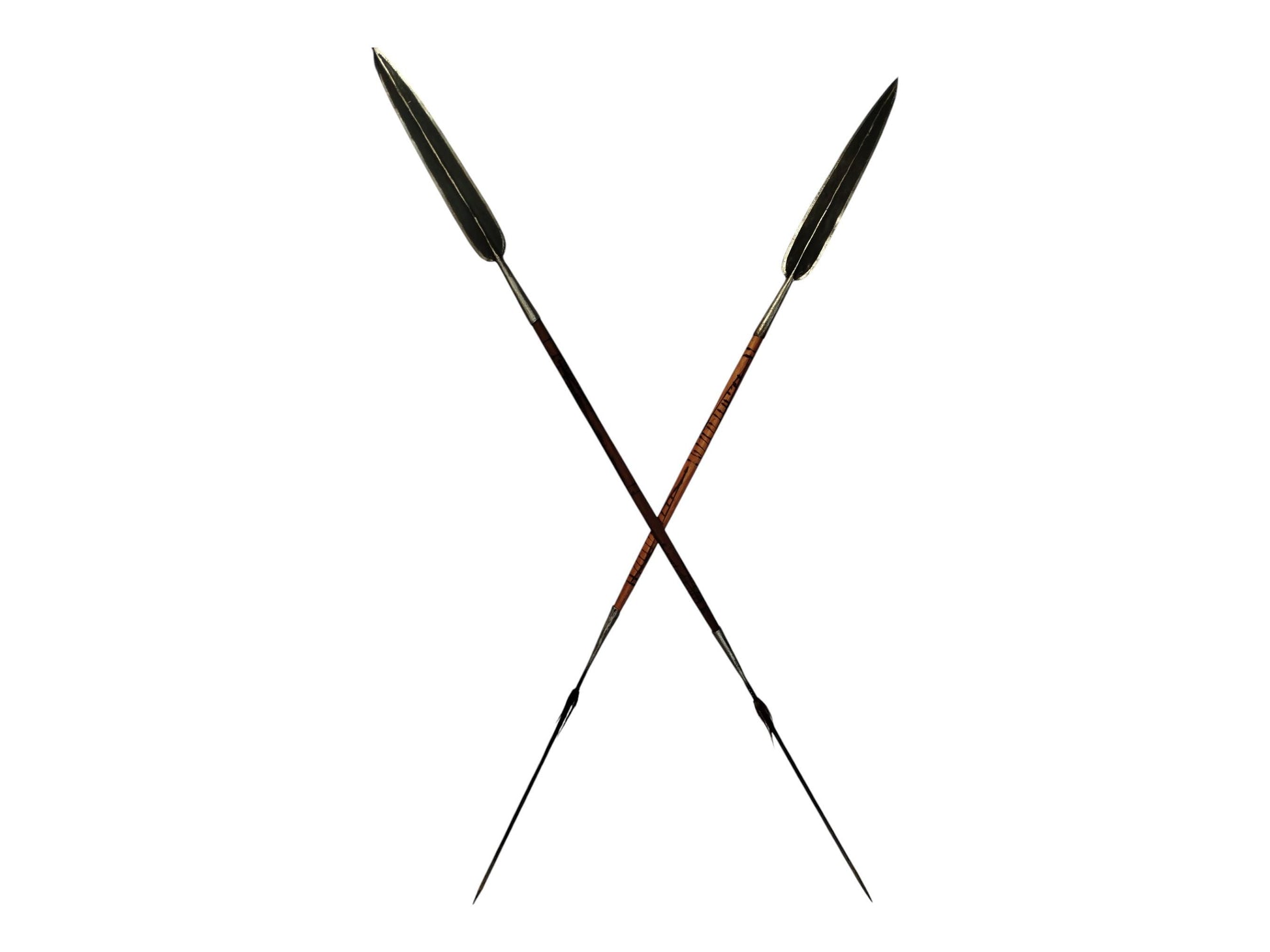 Experience the dual purpose of Samburu craftsmanship with this unique hunting and home décor bundle. This collection features two hand-forged iron spears with wooden handles adorned with tribal mosaic patterns, traditionally used for hunting. It also includes a tough leather shield, adorned with an image of an elephant at daybreak, reflecting the beauty of the African savanna. Expertly crafted by African artisans, this bundle embodies the skills and cultural richness of the Samburu people. A conversation starter and a collector's dream, it bridges the gap between Samburu hunting traditions and their artistic flair for home décor.