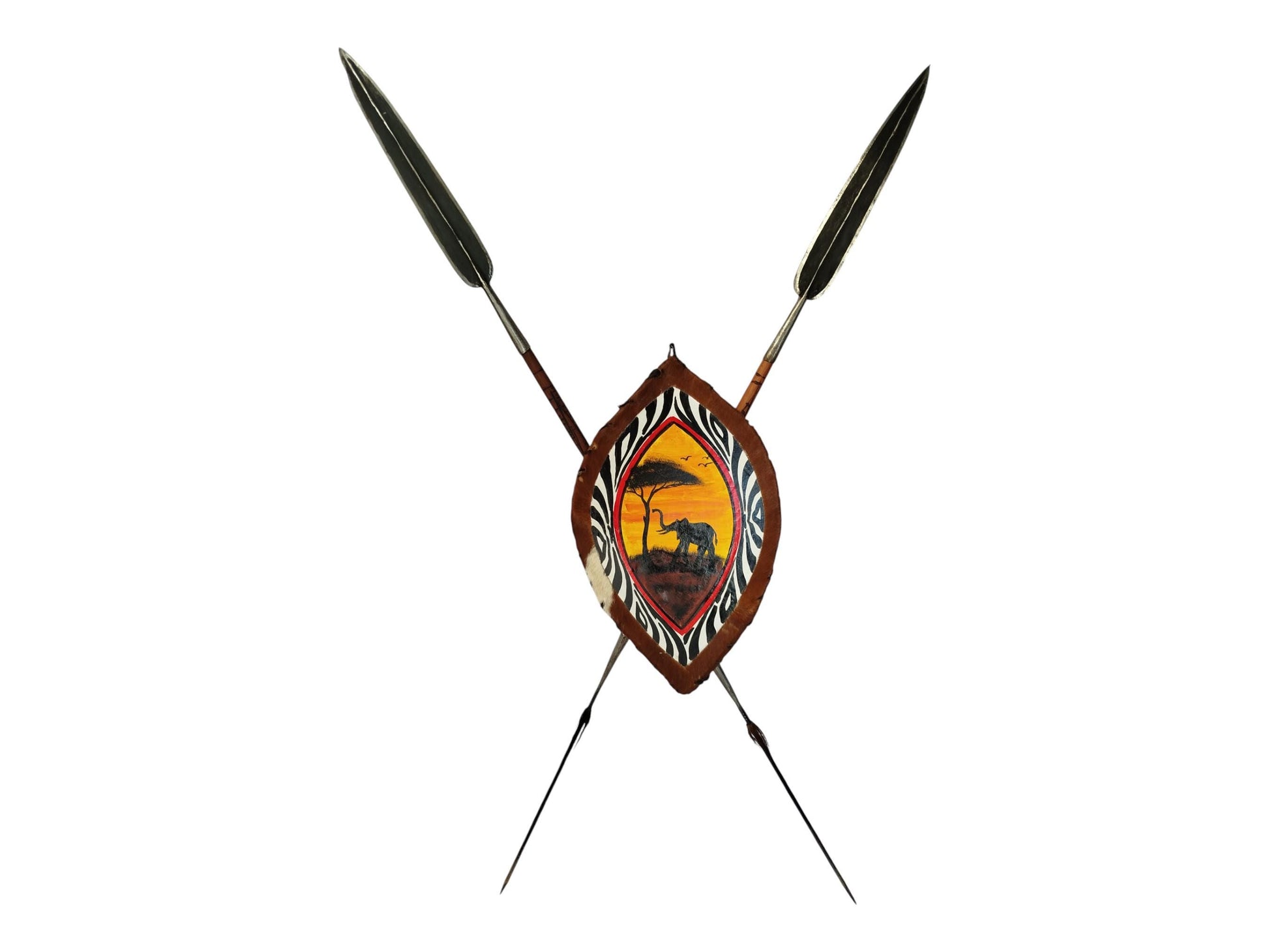 Samburu Spear & Shield Set: African Home Decor, Elephant Dawn